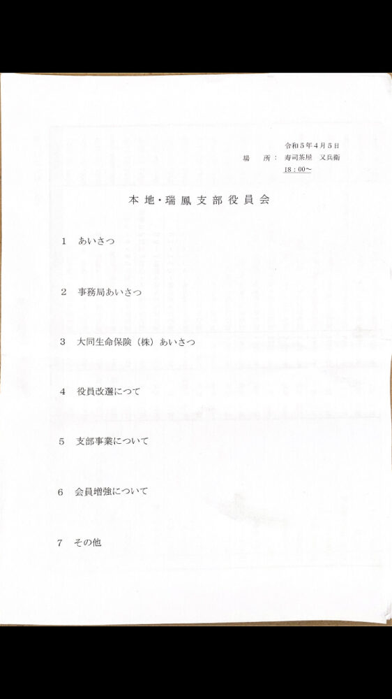 未分類 08Apr2023 瀬戸旭法人会本地ヶ原支部役員改選 公益社団法人瀬戸旭法人会本地ヶ原支部の 役員会が開催されました。 役員には定年があるようで、75歳の支部長と 副会長が役を退きました。 支部長の後任について、ご指名をいただきましたので、 私で良いのか念を押して引き受けました。 引き受けた理由のひとつに隣の瑞鳳支部の支部長を 仲の良い先輩がやっているからというのもありました。 コロナが終息しつつある中、従来の活動が取り戻せる よう進めていきたいと思います。 (2023年4月5日又兵衛) Tweet Share Hatena Pocket RSS feedly Pin it 未分類 自治会町引き継ぎ 商工会工業部会総会 関連記事一覧 本地ヶ原公園グランド草刈り 尾張旭市商工会新春懇談会 本地原ソフトボール愛好会春季大会開幕 Ballet Imagination 2023 壮年大会優勝🏅 尾張旭市ソフトボール連盟役員会議