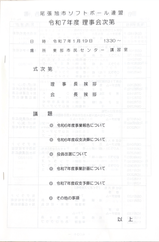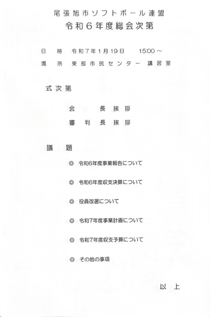 チーム数減少による会費アップや試合編成の変更を受け入れていただき、無事、理事会総会が終わりました。