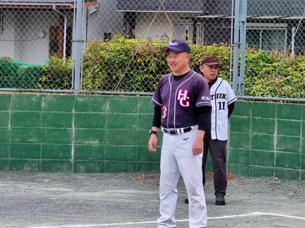 おじいさん80代(ピッチャー)、お父さん50代(ファースト)、子ども18歳(レフト)で同じグランドに立つというこれぞ愛好会の醍醐味が実現しました。