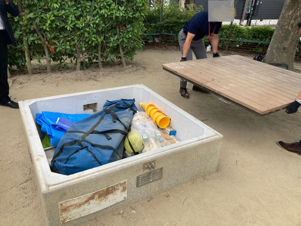 本市の自主防災は自治会、町内会ごとに防災倉庫を独自で物置などを購入して設置しているが、大型ベンチに資機材が収納できれば、倉庫の場所に困ることがなくなり、誰もが必要に応じて利用することが出来るメリットがありますね。