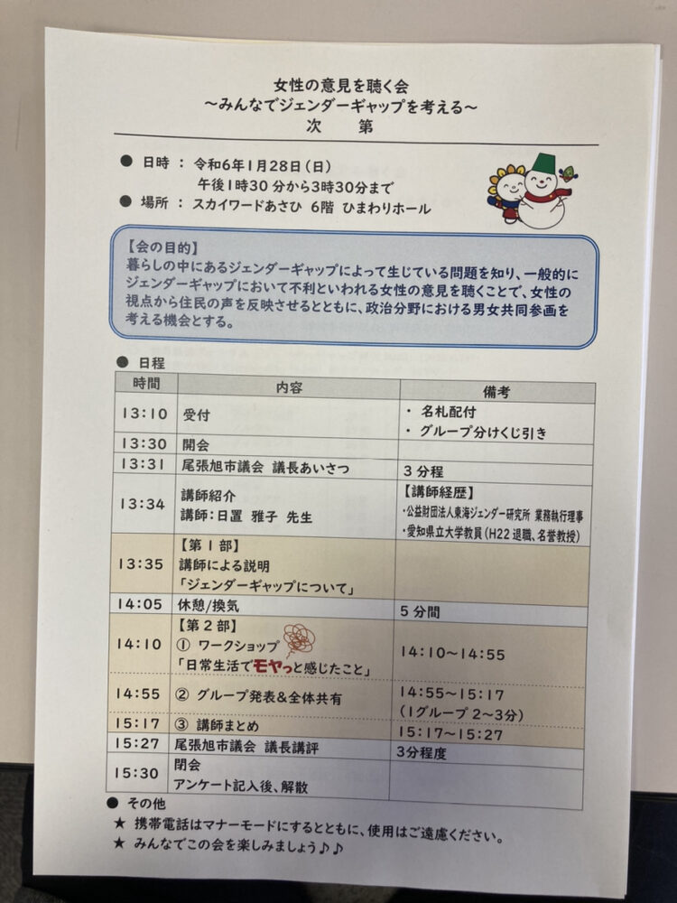 『女性の意見を聴く会〜みんなでジェンダーギャップを考える〜』を開催しました。