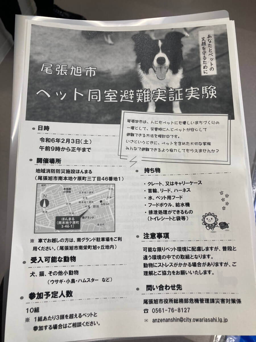 尾張旭市ペット同室避難実証実験