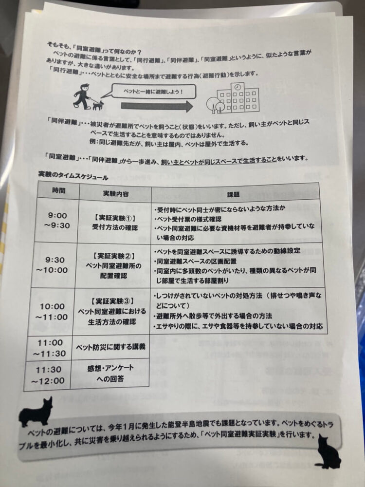 避難所へのペットの避難についての実証実験を行いました。