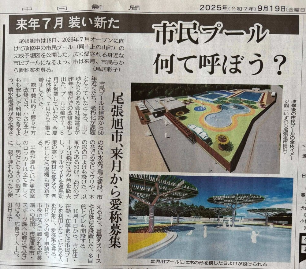 20Sep2025 市民プール改修 追加情報が新聞に掲載されました。 ※中日新聞9月19日をお借りました。 また、市役所のホームページにも情報が掲載されています。 工事費が7億5千万円に!物価高騰で撤退・縮小している事業のニュースを耳にする中、完成に向けて支援をしていただける寄附者には本当に感謝しています。 素晴らしいプールができることを願っています。 (2025年9月19日中日新聞にて) Tweet Share Hatena Pocket RSS feedly Pin it 町内会役員の選出方法変更に関する説明会 グランド草刈り 最近の活動報告一覧活動報告一覧 収支報告書提出 2026.01.14 二十歳の集い 2026.01.12 消防出初め式 2026.01.12 本地ヶ原校区連絡会 2026.01.10 令和8年賀詞交歓会 2026.01.07