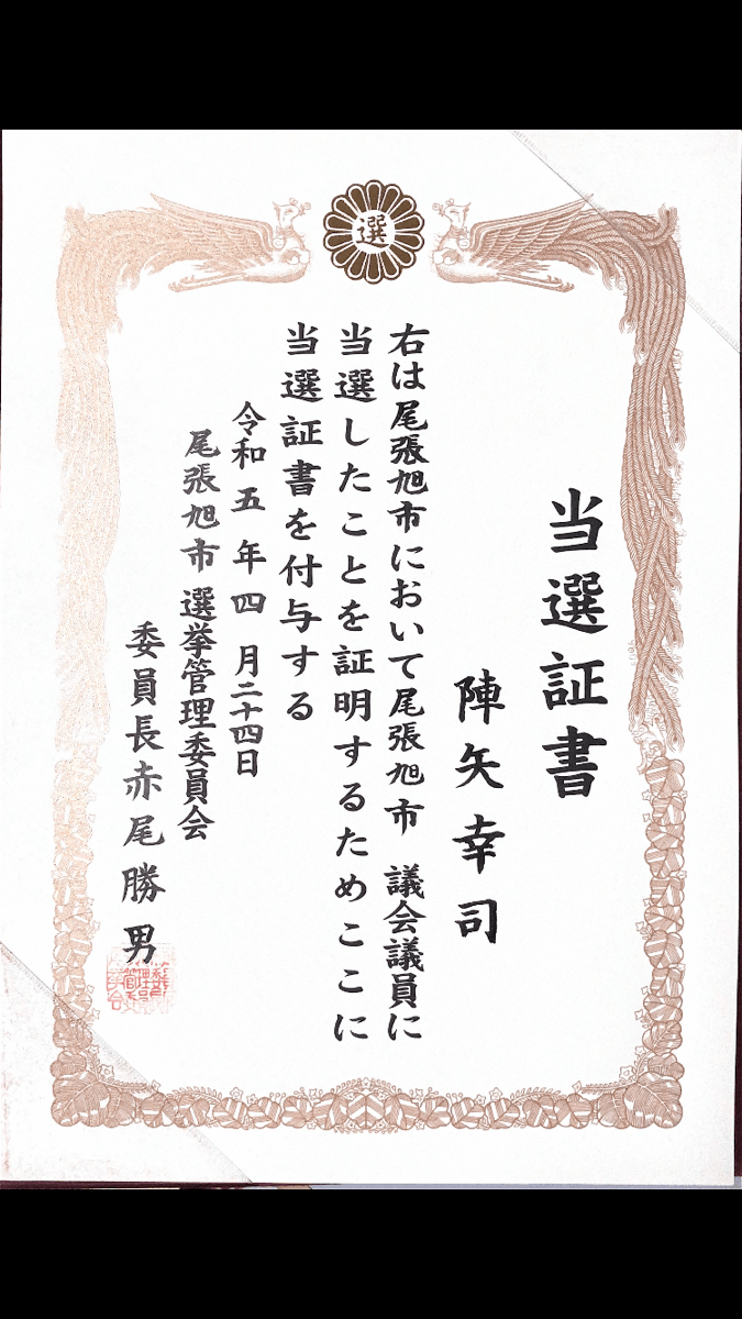 23日に行われた市議会議員選挙にて無事、当選する