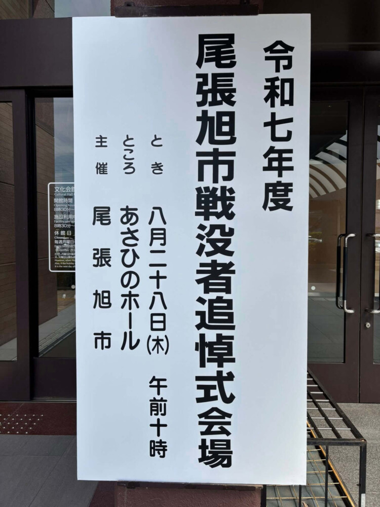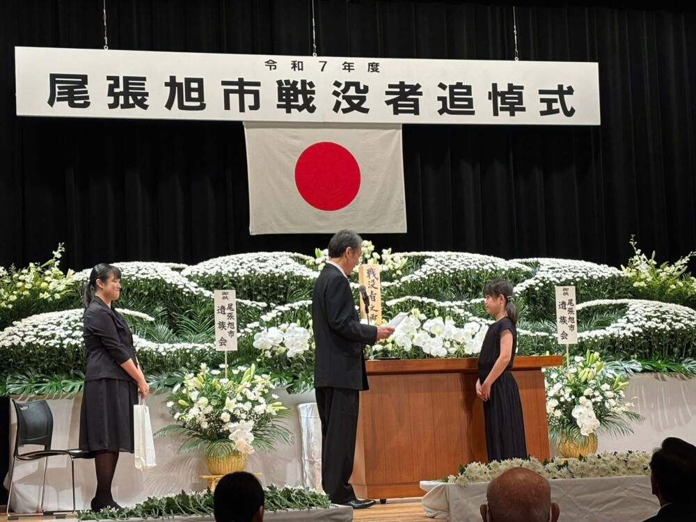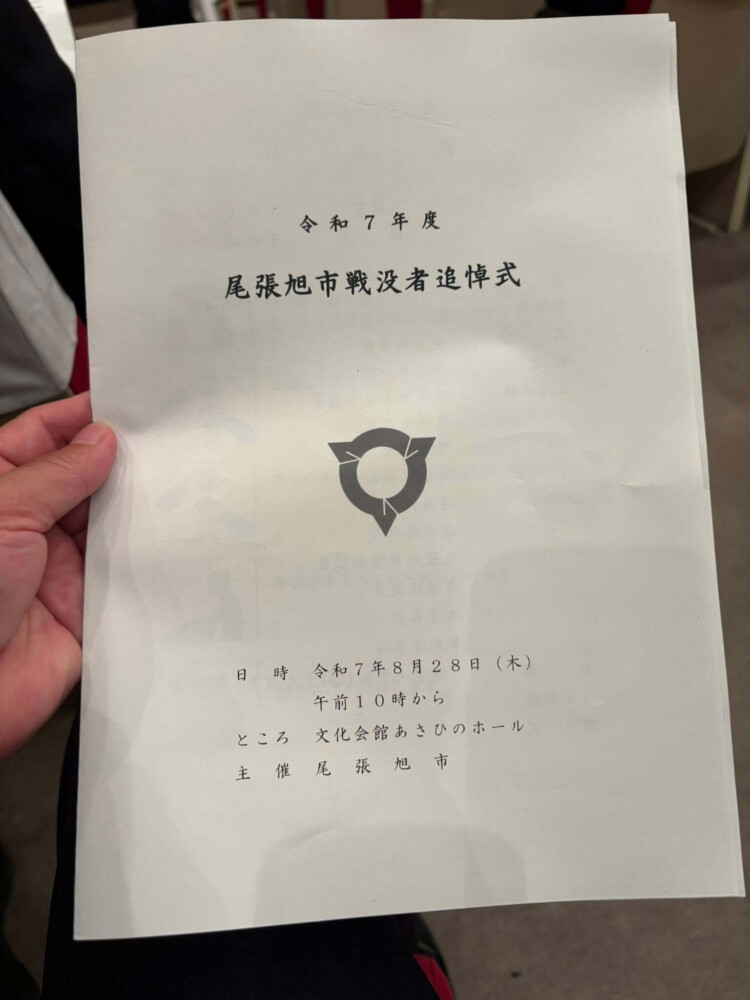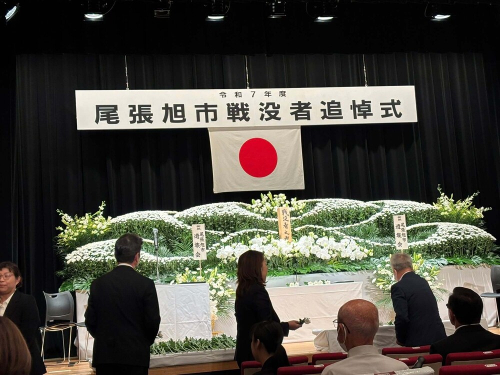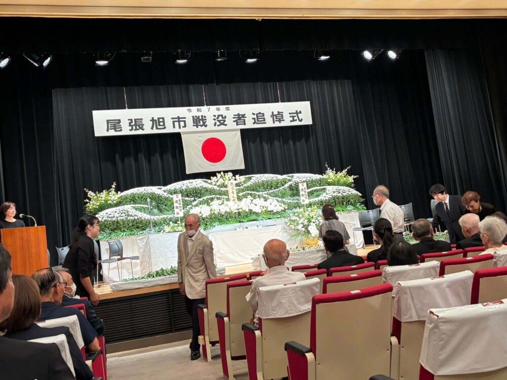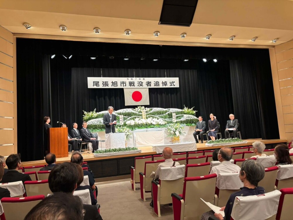 28Aug2025 戦没者追悼式 令和7年度尾張旭市戦没者追悼式があさひのホールで行われました。 黙祷、献花に続き、『戦争・平和に関する作文』の優秀者への表彰が行われました。 (2025年8月28日文化会館にて) Tweet Share Hatena Pocket RSS feedly Pin it 2025就職フェアin瀬戸 大韓民国総領事官邸 最近の活動報告一覧活動報告一覧 道路の補修(3月2日) 2026.03.03 あゆネット結成20周年記念講演 2026.03.02 363防犯パトロール(2026年2月) 2026.02.28 晴丘センター『新エネ大賞受賞』 2026.02.21 スイっとあさぴーに決定 2026.02.20