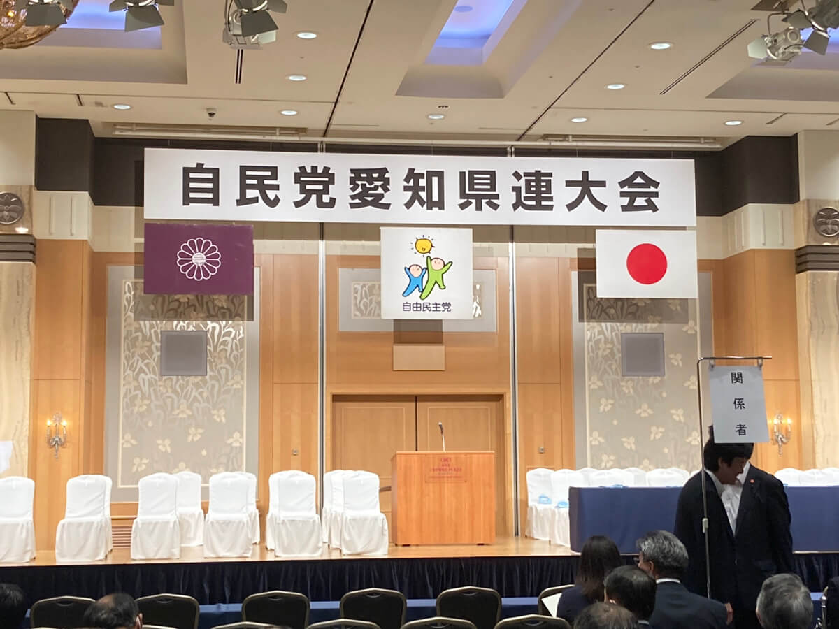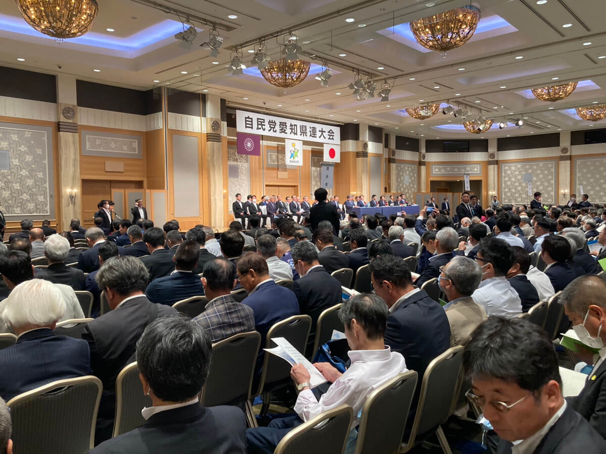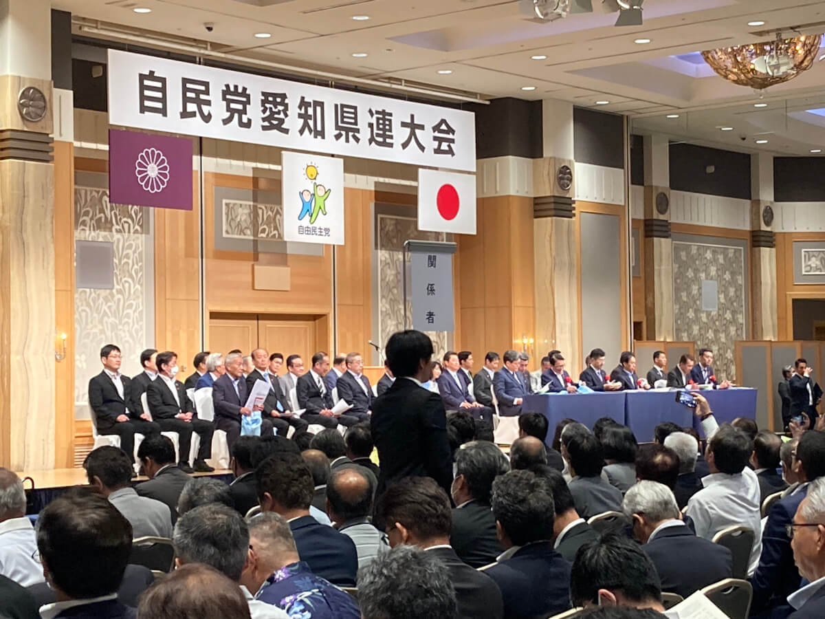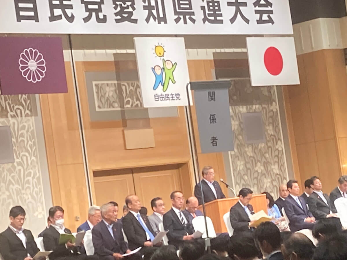 6月24日に開催された自民党愛知県連大会に参加しました。開会宣言、県連会長挨拶、来賓挨拶(萩生田政務調査会長、大村知事、公明党里見愛知県本部代表)、来賓紹介、会員運営委員長報告の後、議事に移りました。