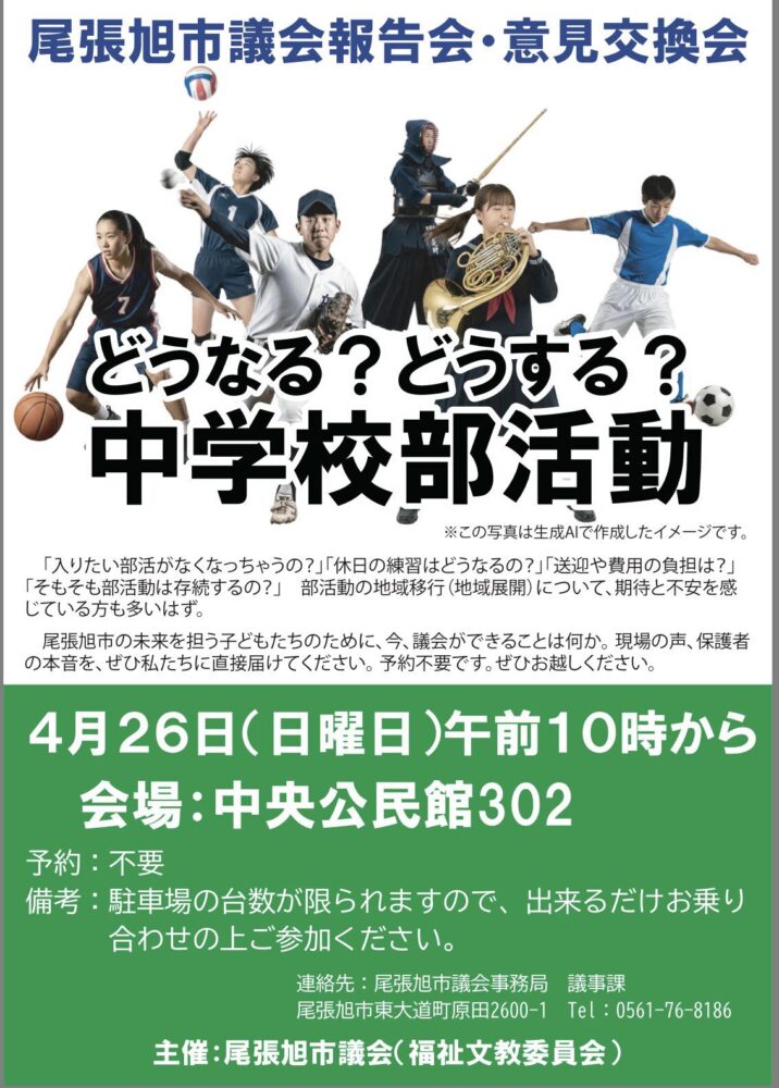 14Apr2026 議会報告会及び意見交換会を開催 今回は福祉文教委員会からの報告会及び意見交換会を開催します。 Screenshot ご都合の良い方はご参加ください! Tweet Share Hatena Pocket RSS feedly Pin it 本地ヶ原連合自治会総会兼連絡会 最近の活動報告一覧活動報告一覧 本地ヶ原連合自治会総会兼連絡会 2026.04.12 ほんまる日勤救急隊を365日体制へ拡大 2026.04.11 令和8年度旭中学校の入学式 2026.04.09 令和8年度本地原小学校入学式に出席 2026.04.09 珈琲と紅茶を愉しむ 2026.04.08