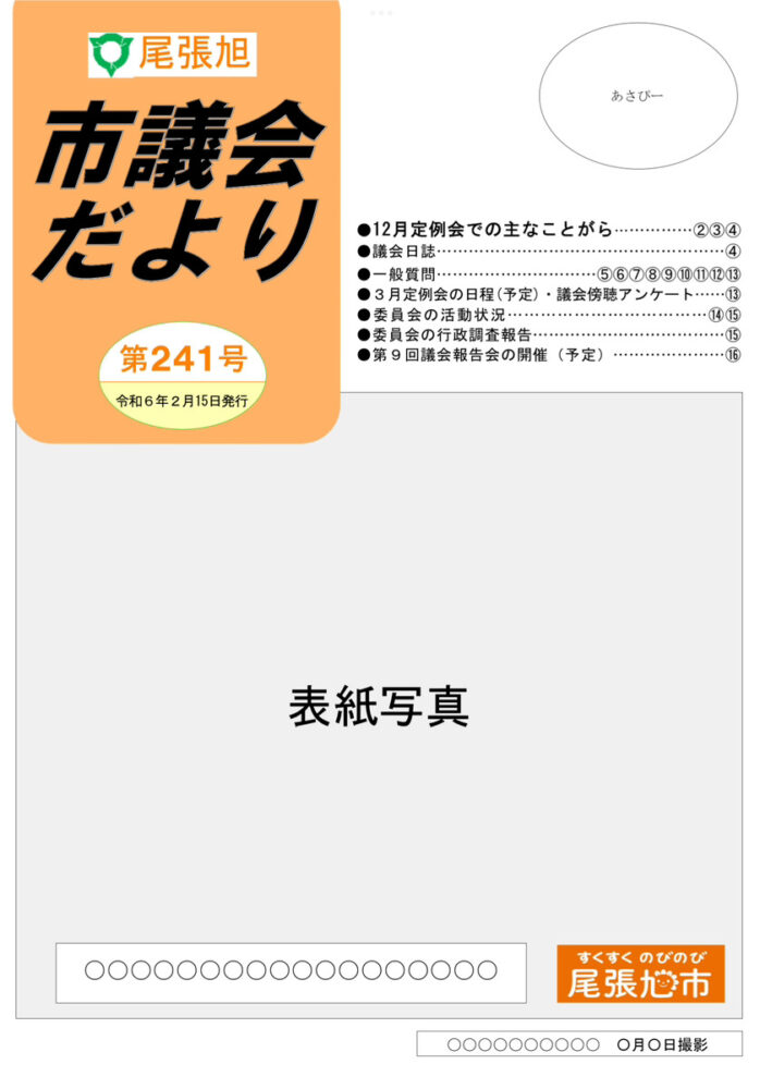 他には、市議会だよりの見直しを検討し始めます。理由は経費削減ですが、他市の市議会だよりと比べると古いイメージのある本市議会だよりをリニューアルしたいものです。