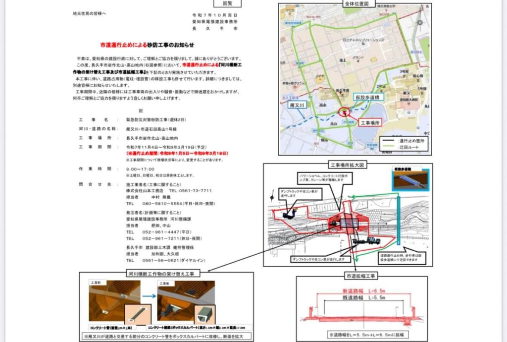 雁又川河川工事に係る通行止めについて