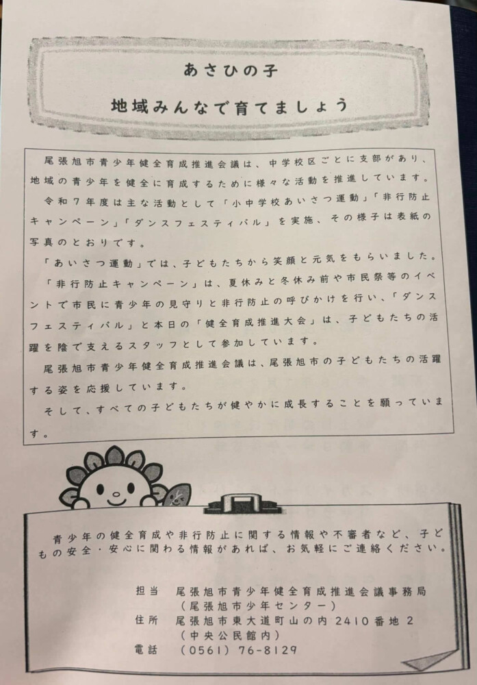 第40回尾張旭市青少年健全育成推進大会が開催されました。各賞の表彰、作文の発表がありました。
